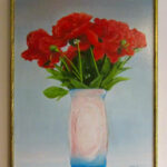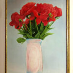 A bouquet of peonies in a vase in a plastic space 50×60 oil on canvas 2010.