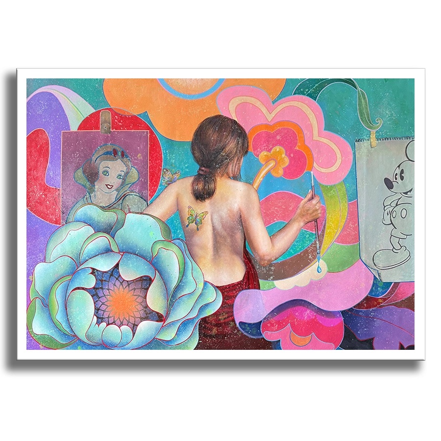 In this piece, I blend the nostalgia of pop culture with the delicate beauty of fine art, using oil to capture vibrant colors and textures. The central figure, caught between reality and imagination, symbolizes creativity’s transformative power. This painting radiates energy that ignites inspiration, inviting you to celebrate the magic where childhood dreams meet artistic expression. It brings warmth and whimsy to any space.