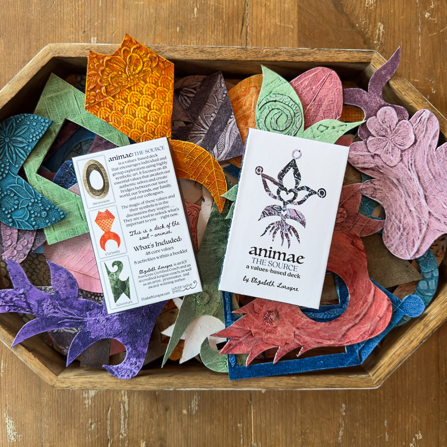 The entire series is also available as Animae: The Source, a Values-Based Deck—an open-ended tool for self-discovery, self-healing, and community-building. As a Jungian coach, Elizabeth understands the power of symbol. She created this values-based tool in hopes of building bridges between friends, family, colleagues and, most importantly, between our inner world and ourselves.
