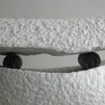 I also enjoy combining shapes and materials. The texture of the chisel stroke and the irregularity of the broken surface clearly reveal the craftsmanship, keeping in mind the beauty of imperfection (wabi-sabi).
