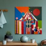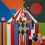 • Here the viewer is invited into a colorful and playful world where the rules of reality give way to imagination. The style hovers in the borderland between naivism and folk art, with clear influences from modernism and retro aesthetics.