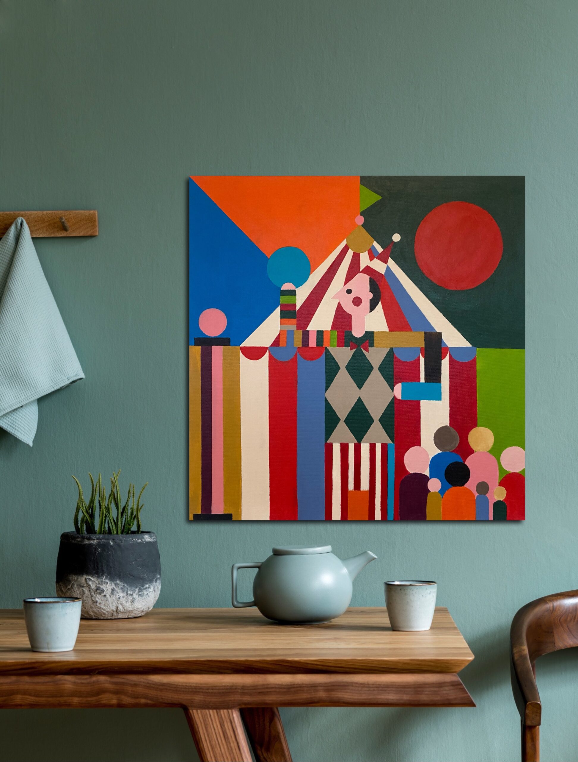 Acrylic painting stretched on canvas.
