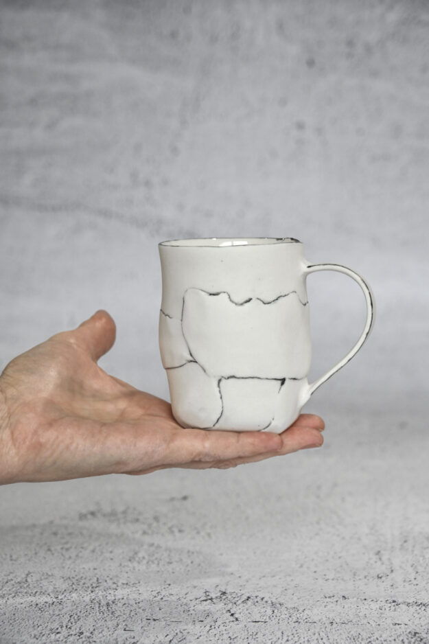 Chaque tasse est façonnée à la main, fruit d’un assemblage minutieux de languettes de porcelaine, qui lui confère sa forme et son caractère unique.