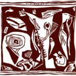 A mysterious dream image with cut off head and hand. With a large face (left) that has a labyrinth eye and probably also the power to do something terrible to others…