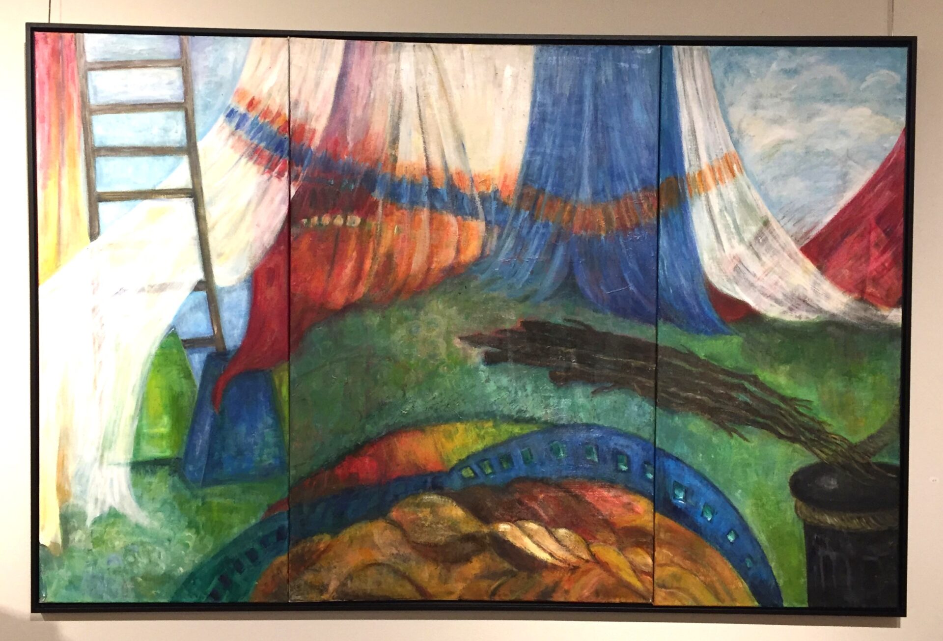 Het drieluik heeft een kleine zwarte lijst.