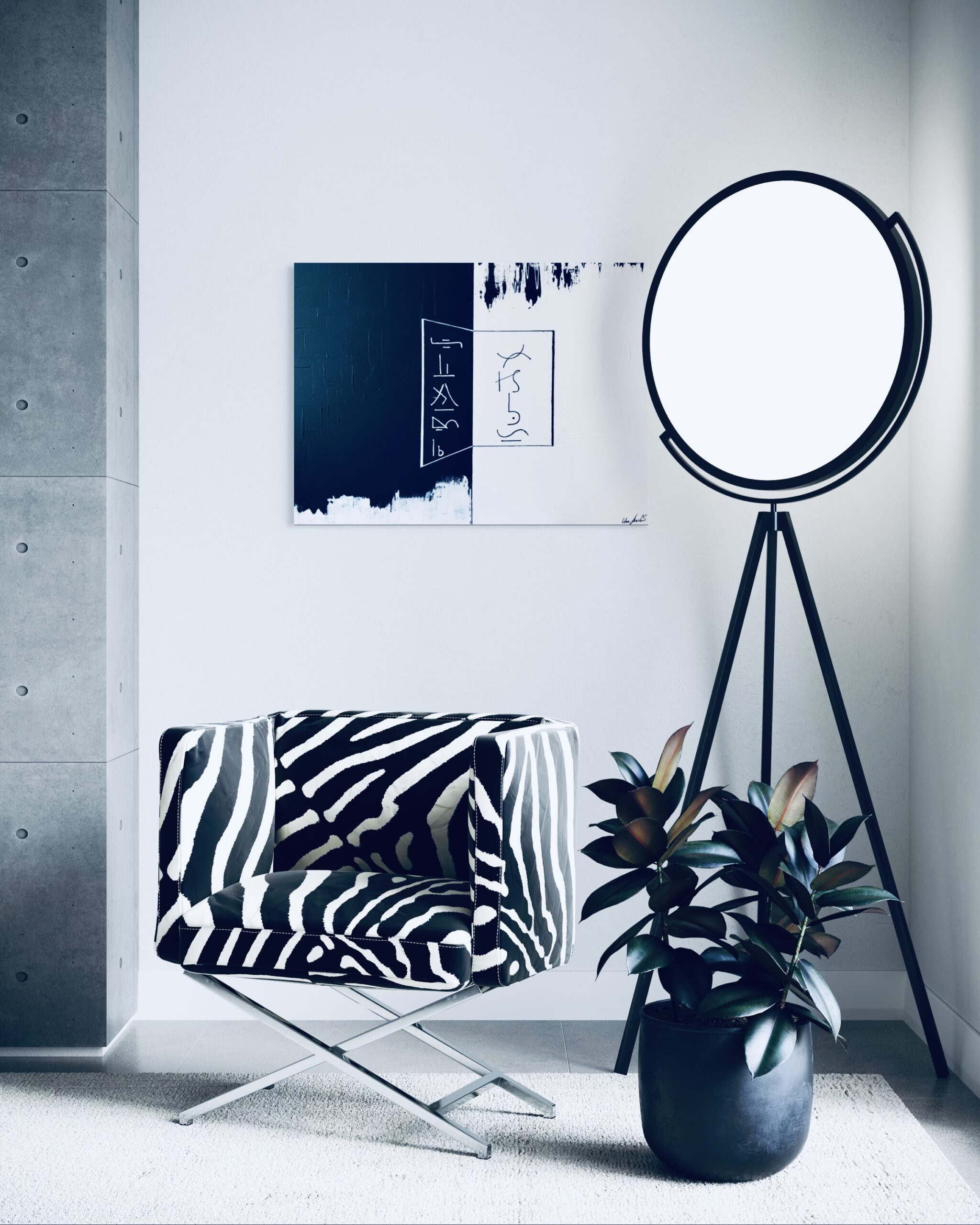 The contrast of black and white in this work symbolizes the eternal coexistence of opposites: light and darkness, chaos and order, the outer and the inner. This painting is a reflection on balance, acceptance, and unity within diversity.