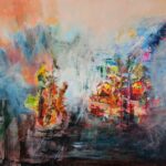 Music is a subject that often inspires Navema, as she is a musician herself. The canvas is semi-abstract and very colorful.