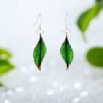 The Enameled Mango Leaf Earrings are a colourful spin on the original Mango Leaf earrings. The Mango Leaf Line is inspired by the times I spent as a child in my grandparents’ backyard, playing with my sister and cousins under the mango tree’s shade. Mango leaves have a way of drying and twisting into themselves to create a unique shape: no leaf dries the same way. I have recreated this through fold-forming, a technique which involves hammering, folding, and unfolding the metal to create the desired effect. I have added colour through a process called enameling. Enamel is coloured glass that has been baked on to the surface of the metal at 1500 degrees F.