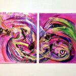 Mixed media collage on cardboard, created in 2020. Original artwork in 2 pieces— unframed.