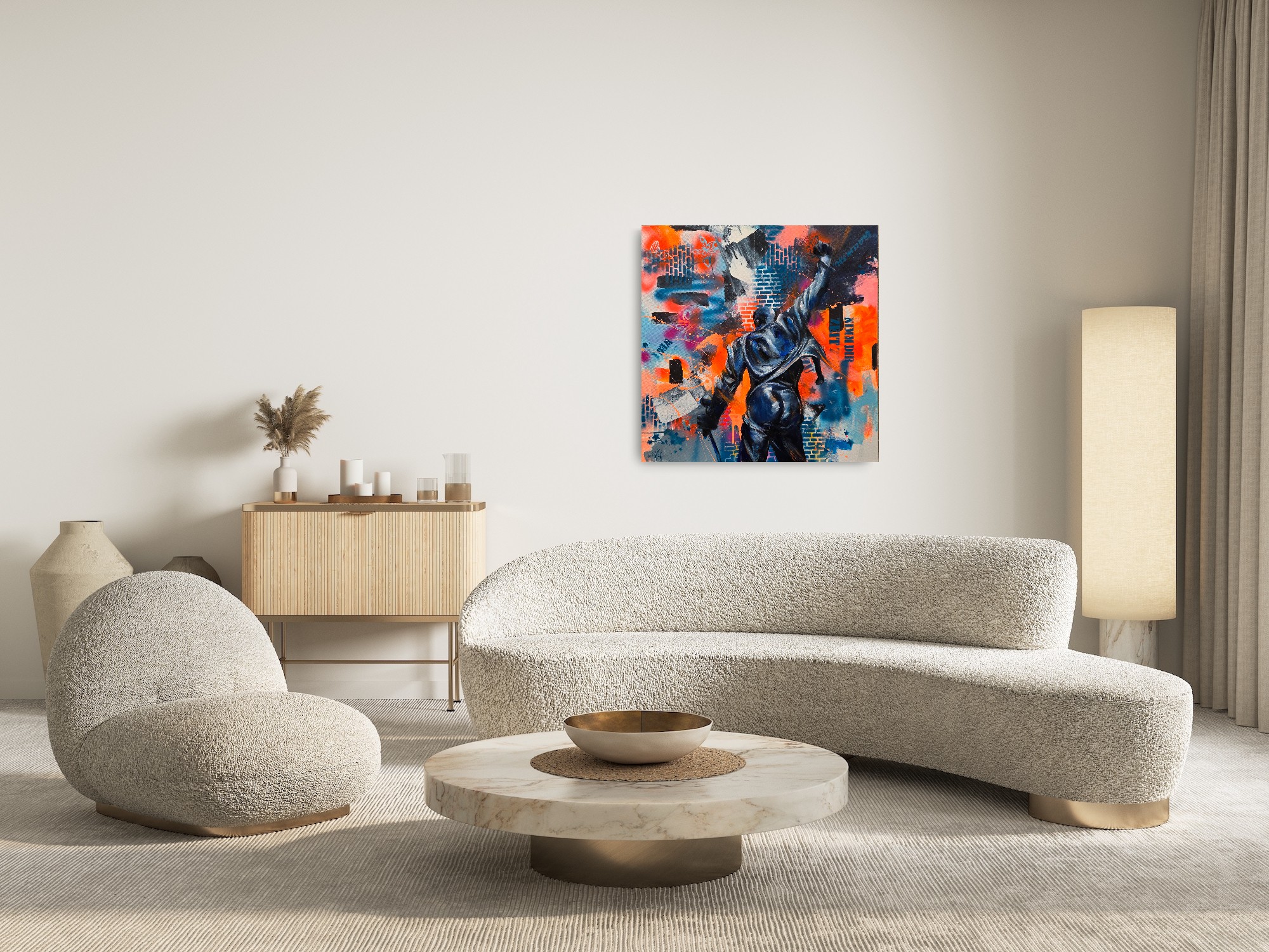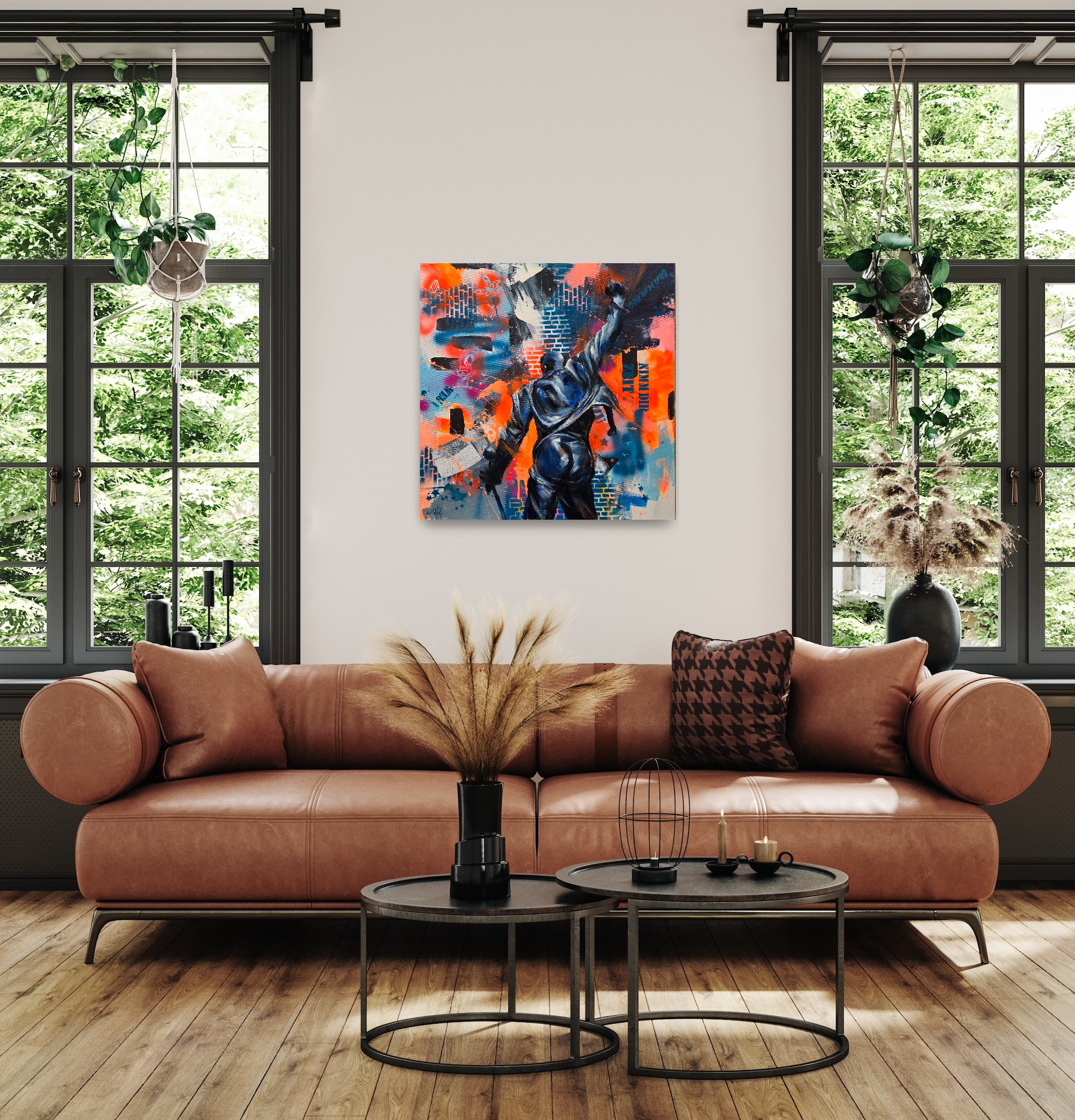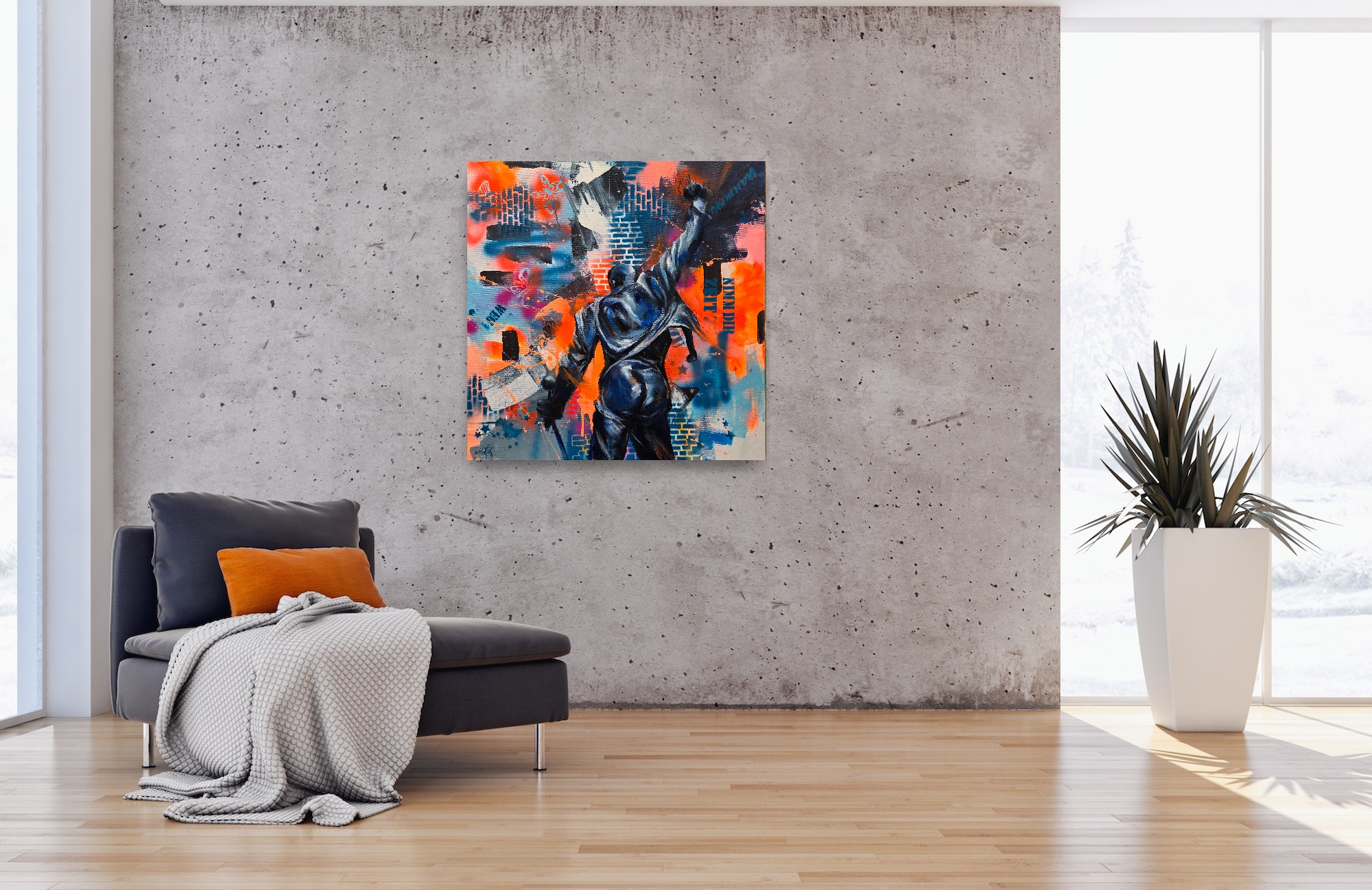 The bold colors and dynamic style reflect the untamed spirit of Freddie Mercury.