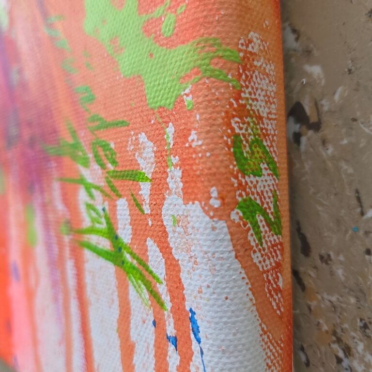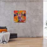 Der Mix aus abstrakten und Pop-Art-Elementen bringt Spaß und Dynamik in das Gemälde,