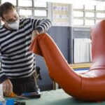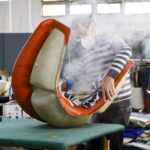 This is how Stephen Burks sums up his new collection for BD. An armchair that pursues a visual “ultra-comfort”, and invites you to sit on it. The leather upholstery oozes over the bare iron structure to contrast with the most luxurious touch of the skin. Available in various structures and upholstery colors.
