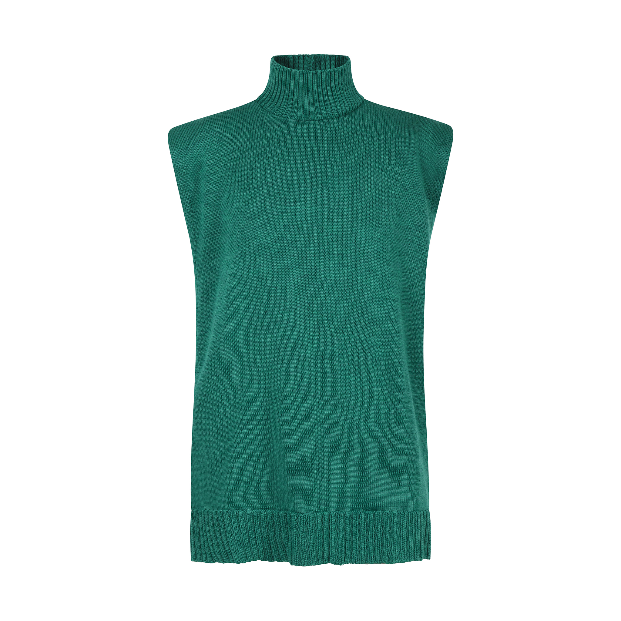 Unisex sleeveless pullover with shoulder pads turtleneck in 100% merino wool