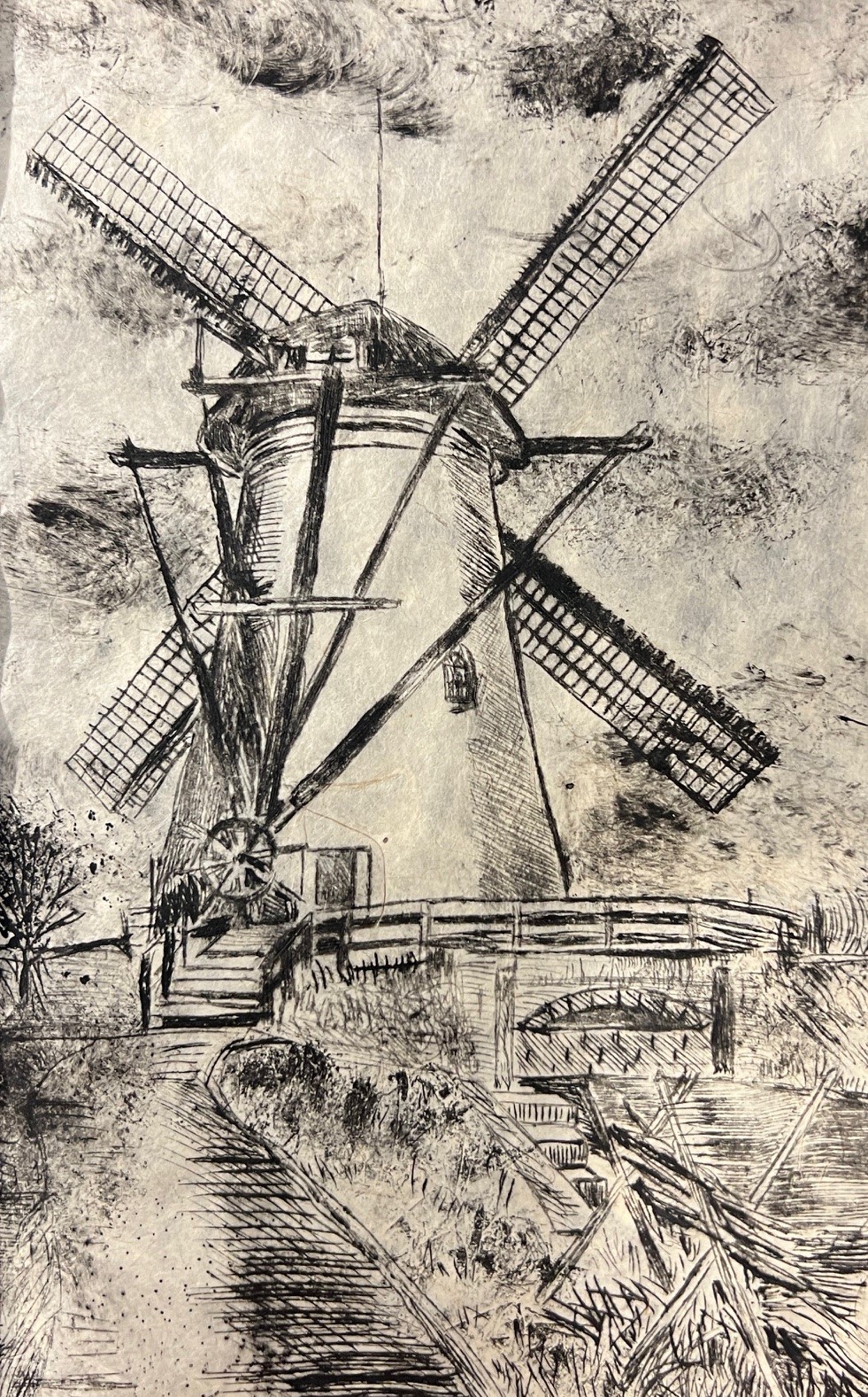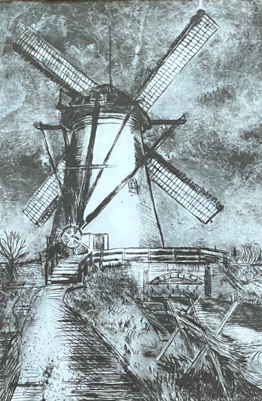 Visiting the Netherlands I visited Kindersdijk on a cold, rainy day. I returned to my studio to create a painting and a series of dry-point etchings.