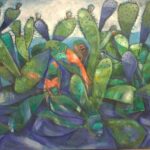Oil on canvas 200 X 140 cm. Large format painting where the aesthetic impression of a prickly pear plant is freely and expressively represented. An expressive realistic version of the nature of the plant, its colour and shape.