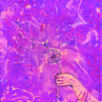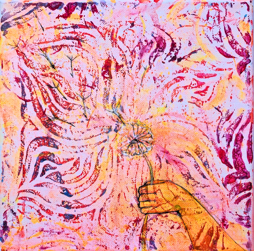 This painting is light reactive. Under blacklight it reveals a glowing effect and a different color scheme.
