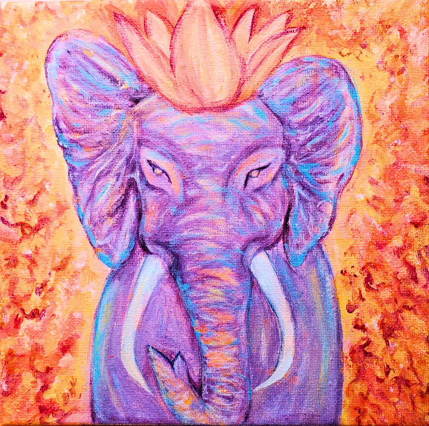 This painting is light reactive. Under blacklight it reveals a glowing effect and a different color scheme.