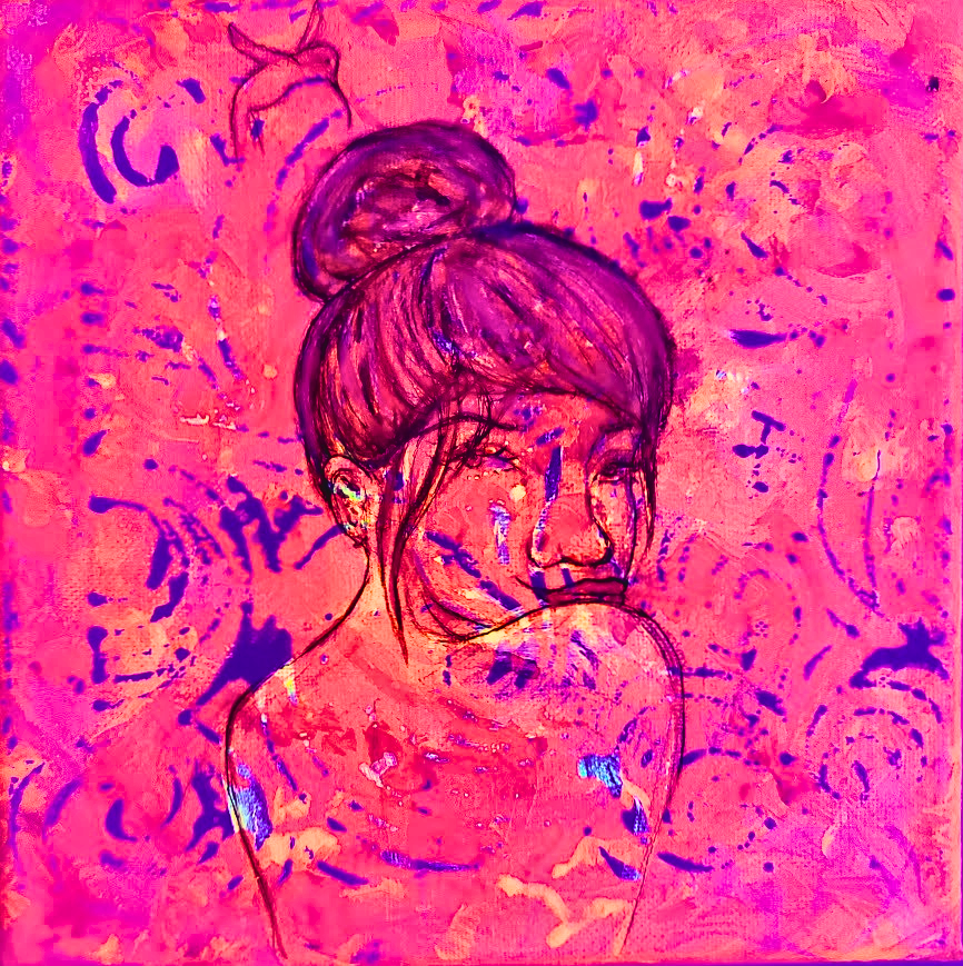This painting is light reactive. Under blacklight it reveals a glowing effect and a different color scheme.