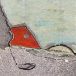 This painting belongs to a series of photographs, that I took from parts of a street. Mostly in the country. You can find several parts who look like mended streets. They attract me in a high way. Parts of the Photons, printed and fixed on canvas, I give a new structure with colors and other materials. Here you see a transparent print of a flipflop. Lost or found?