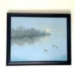 This is a misty morning landscape with swans and a few ducks in the distance. I want to convey a sense of peace and tranquility, almost like a therapy painting. This painting is available unframed for 1575 euros.