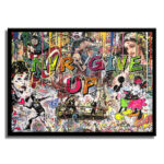 Medium: Mix media, silk screening, hand finished with Oil, Acrylic, stencils, spray paint, Collage with old iconography images, newspapers, comic books, magazines and text on canvas.