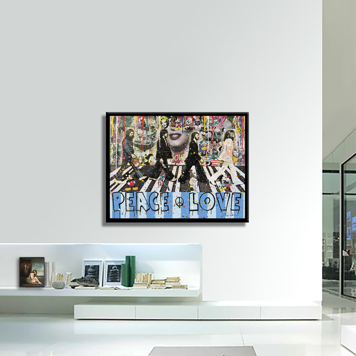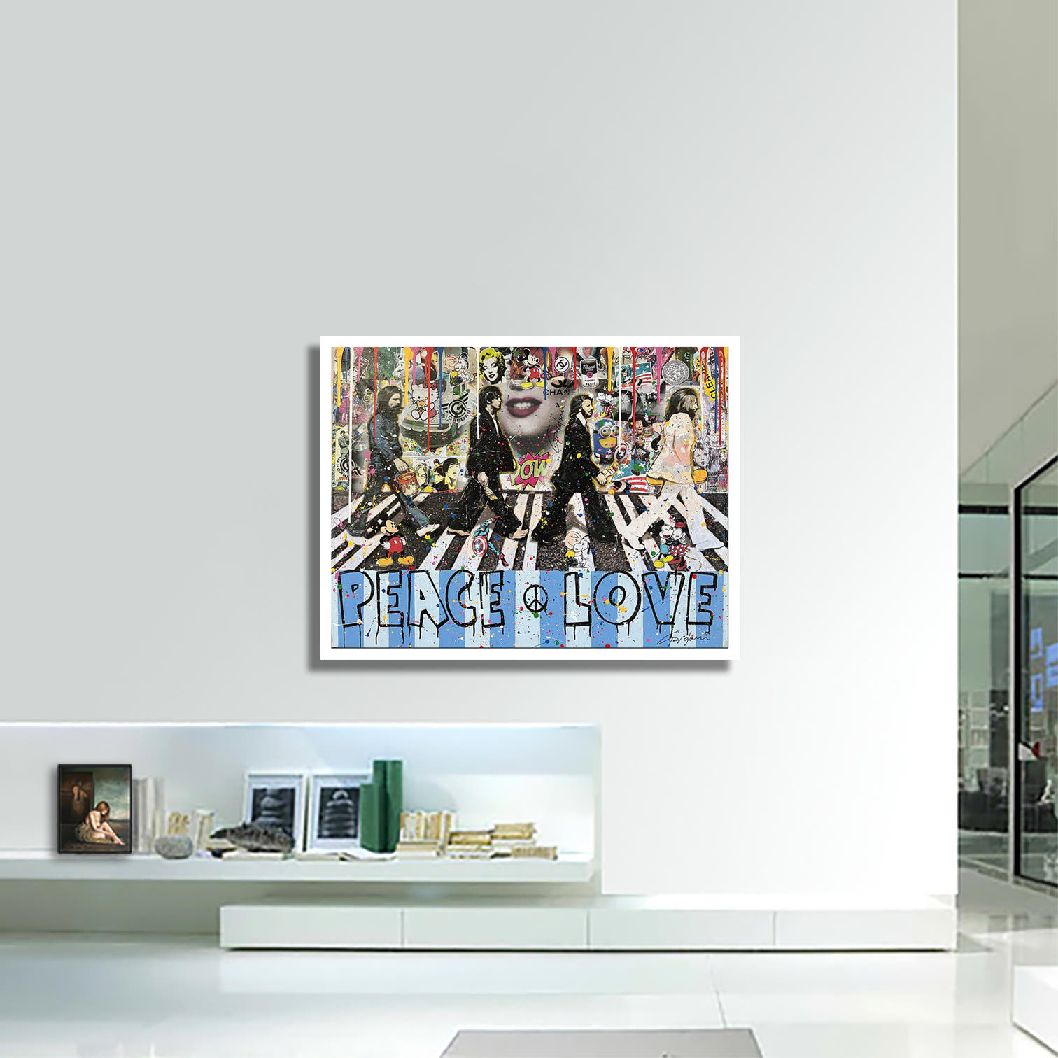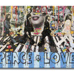 Medium: Mix media, silk screening, hand finished with Oil, Acrylic, stencils, spray paint, Collage with old iconography images, newspapers, comic books, magazines and text on canvas.