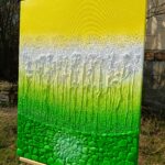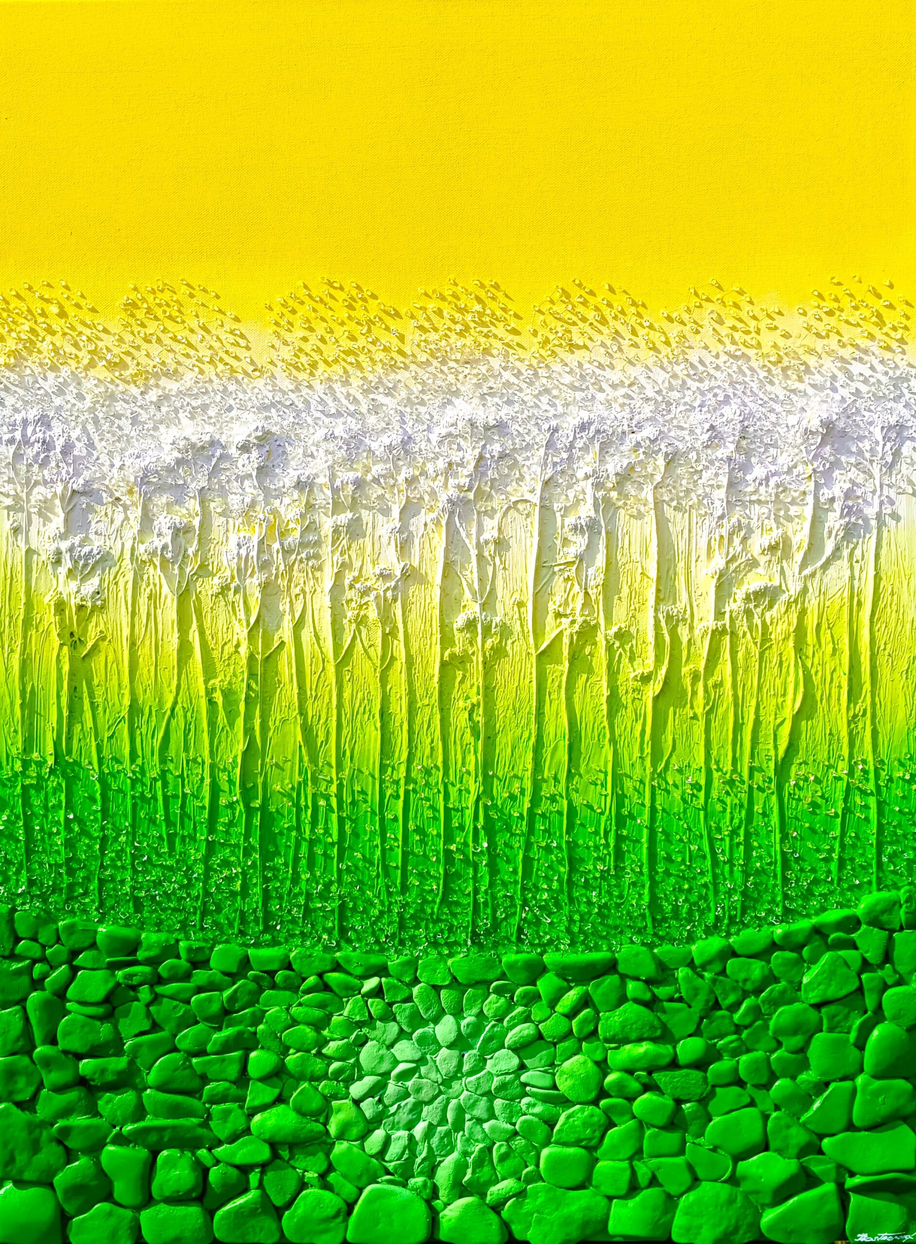 Original, canvas 60×80 cm, acrylic with diamond crystals, sand stones, and garden herbs (lemon balm)