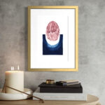This collagraph monoprint is 1/3 in a variable edition. Responsibility comes framed in a brushed brassy gold metal frame. Framed, the artwork measures 25.4 CM width by 33 CM high.
