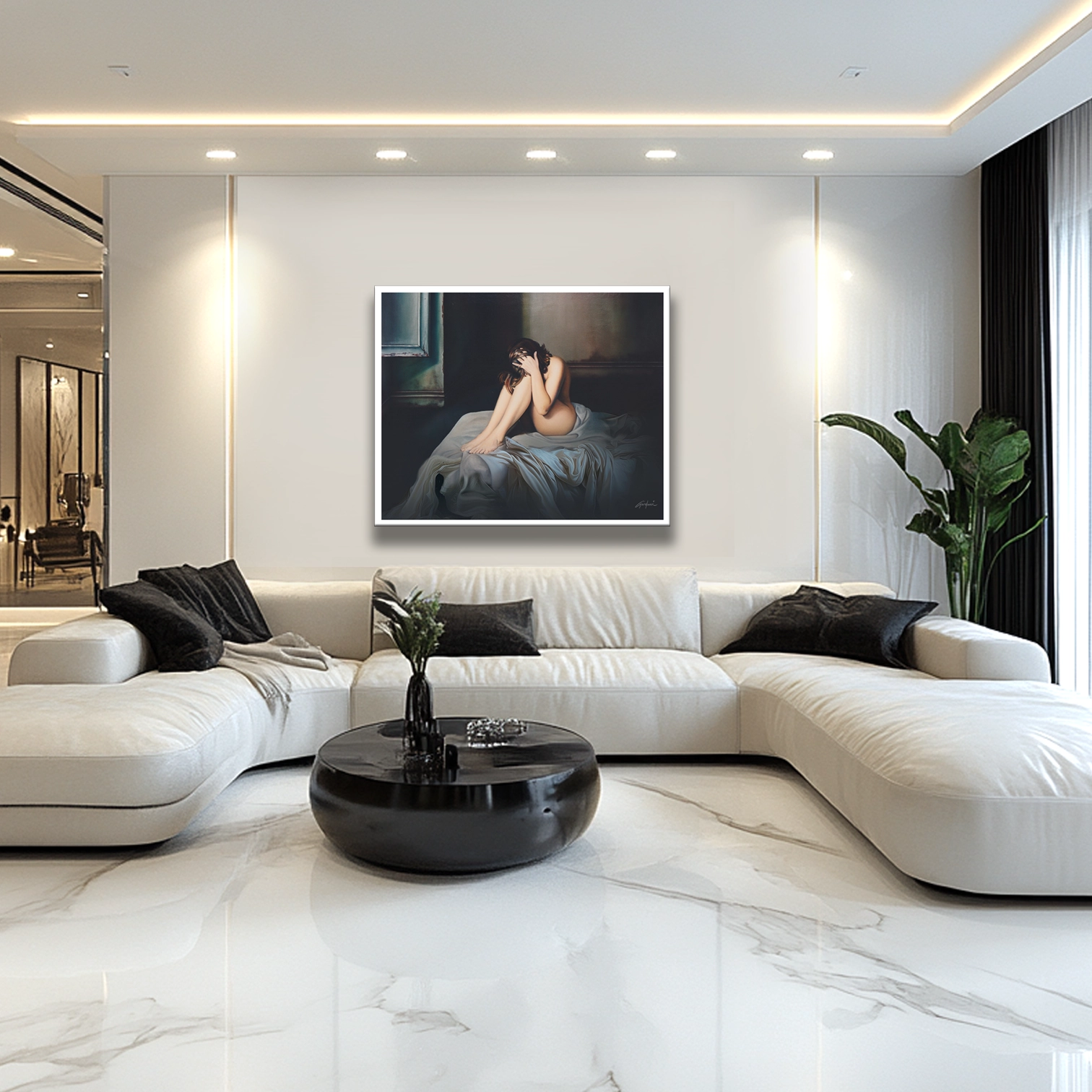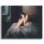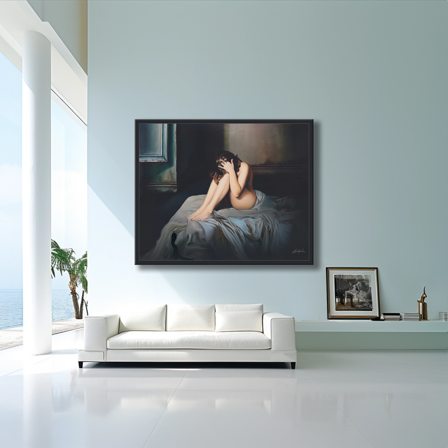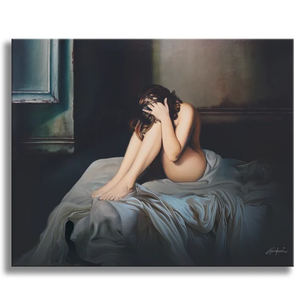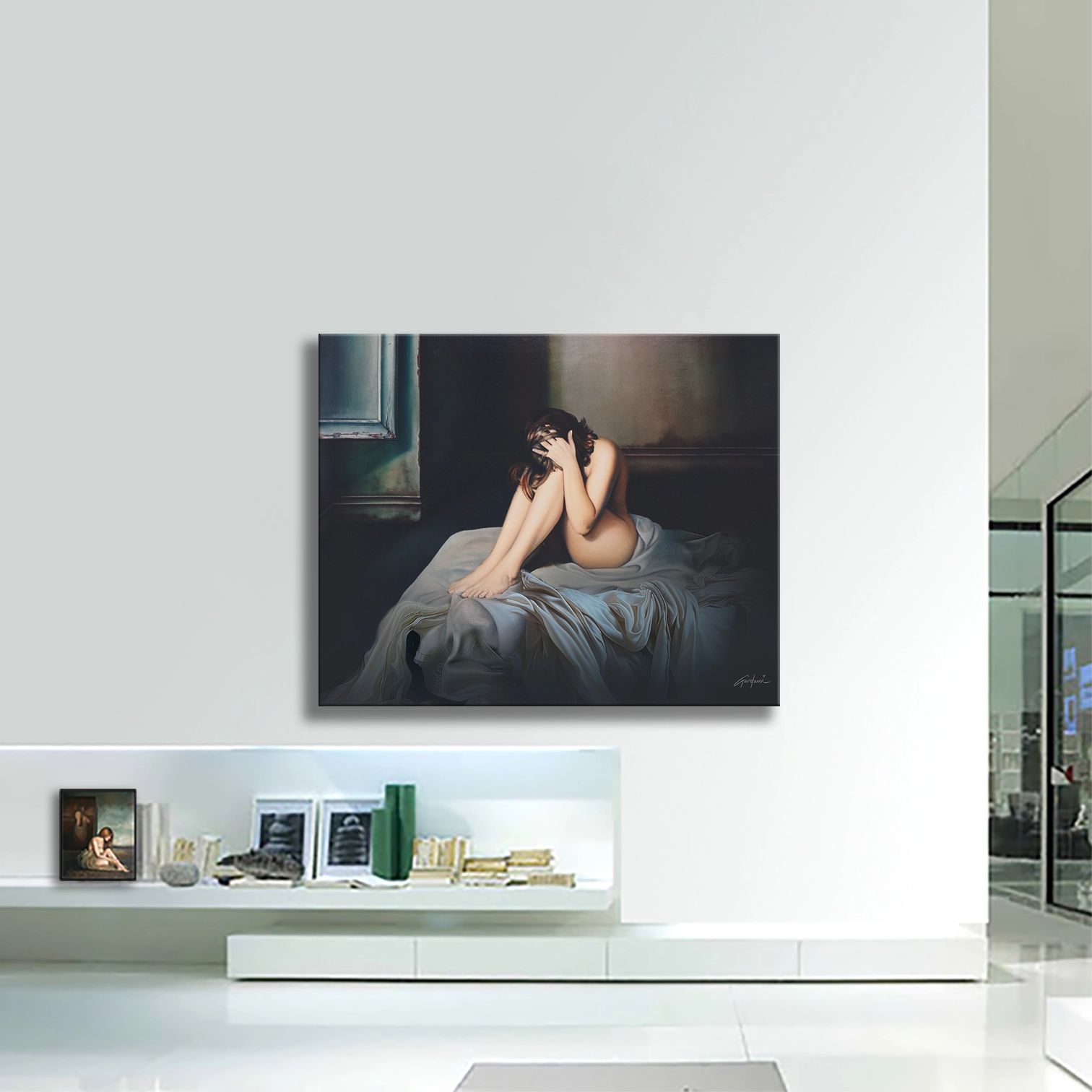 Silent captures a contemplative moment through masterful realism, showcasing the emotional depth achievable in figurative art. This original oil painting on canvas presents a woman in a state of quiet introspection, rendered with meticulous attention to light, form, and subtle psychological nuance. A sophisticated addition to any collection that values authentic artistic expression and refined craftsmanship.