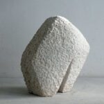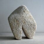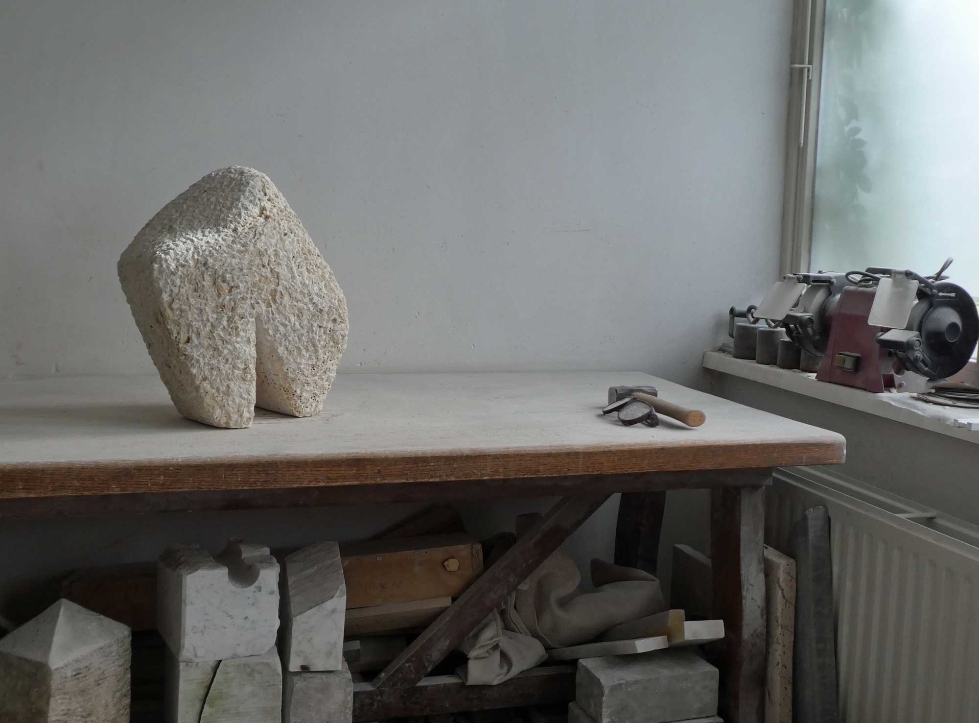 I wanted to make a robust form, with a small movement. The start was quickly made. But it turned out to be quite a quest to get what I wanted. And so this stone sculpture became many kilos lighter during the process. It is now standing, solid and sturdy.