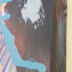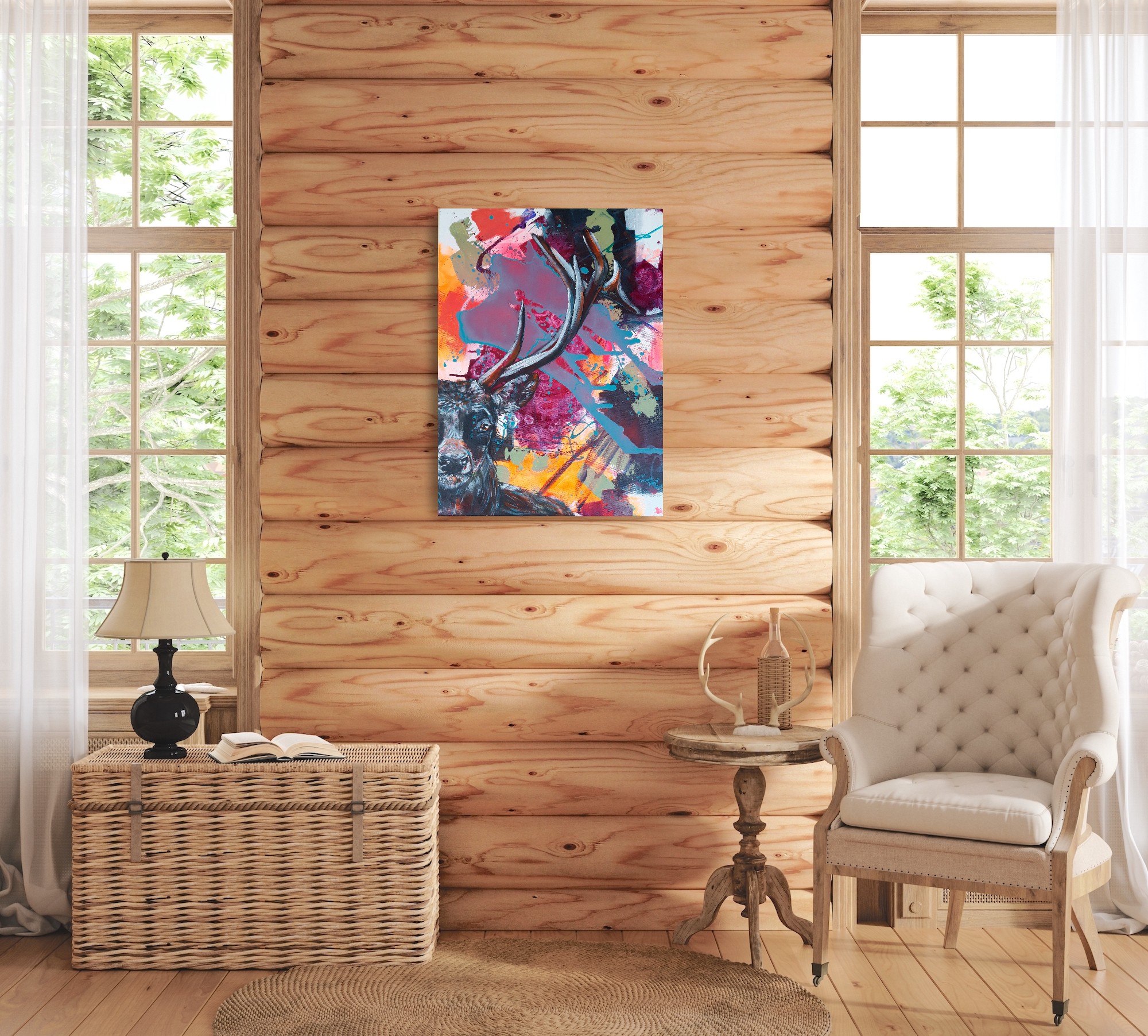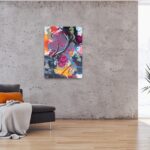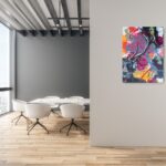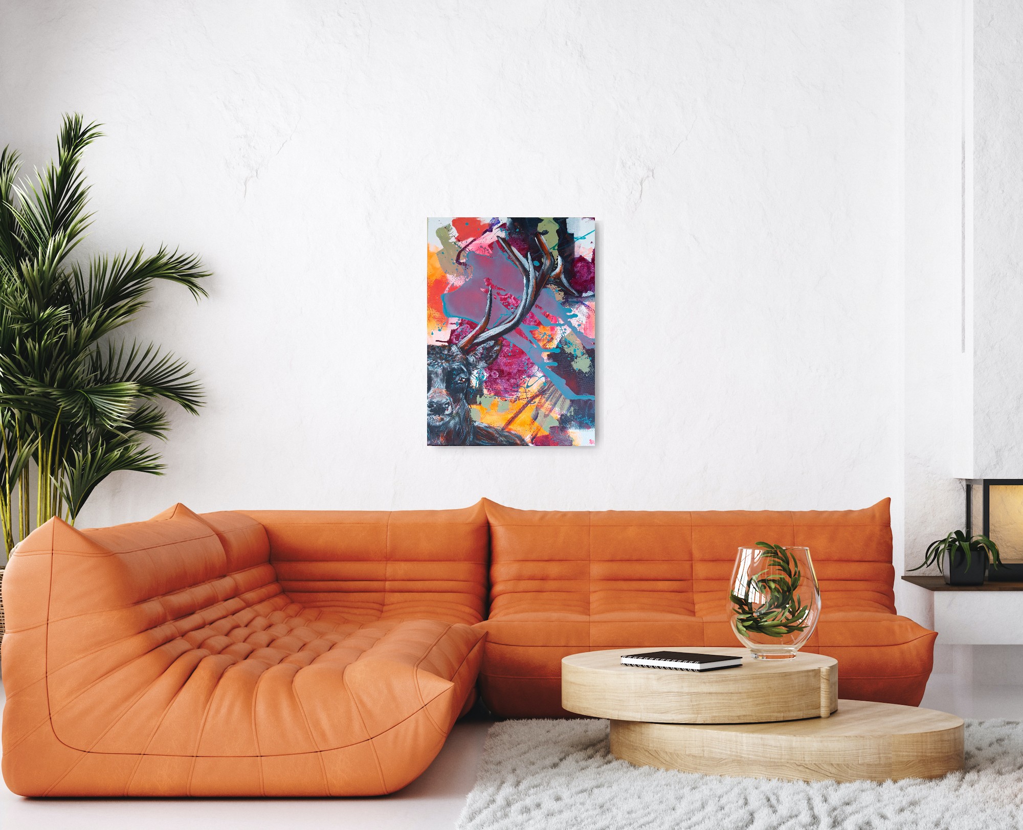 stands in stark contrast to a wildly exploding background full of color and dynamism.