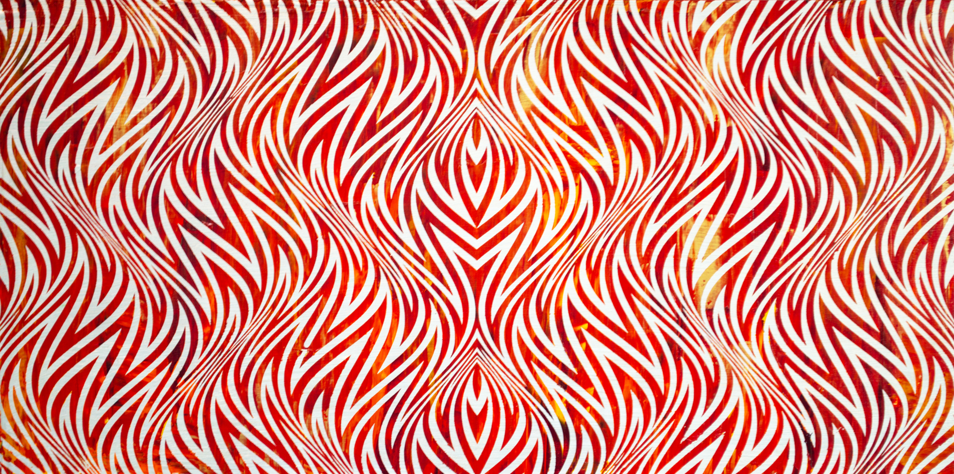 “Chromatic Hallucinations” is a body of work that focuses on the ideals of pattern. Different colors and shapes vary meanings throughout different cultures, but the idea is carried down from generation to generation. From birth to death, pattern is a part of everyday life and cultural practice. The drive to recognize and form patterns can be from a glimpse into curiosity, discovery of new ideas and experimentation through everyday life. The more patterns we can recognize, the wider our imaginative and creative scope. Humanity responds dramatically to balanced pattern so much so that it has been researched to reduce stress levels by as much as 60 percent, just by being the field of vision of the viewer. The more you are thinking about pattern, the more you can see patterns all around you. The future of intelligence is in making our patterns better, our heuristics stronger. One thing is clear, and that is being able to recognize patterns is much what gave humans their evolutionary edge over animals.