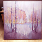The Thin Place Beckons is a very large semi-abstract original oil painting showing deer gathering beyond a lake in a heart shaped forest at twilight. It is 48x48x1.5 inches. It was made with liberal amounts of white, golden yellow, peach and purple paint with cyan blue for accent. The inspiration was the definition of the word ‘thin place’ which is a Celtic expression for a place that stands between two universes. This is an idea I have always loved and the deer appear often in my paintings as in other folklore they are regarded as harbingers or guides between worlds. Because the paint is multilayered and oil colours do change quite dramatically in different light, (something that delighted me when I saw it in this painting), it will go from muted neutral colours to luminous sunset ones at different times of the day. I am satisfied I caught some of the magic I was trying to catch in this painting and hope that whoever buys it will have magic too. Painted on deep edge canvas, wide edges, painted white, ready to hang and comes with a certificate of authenticity. Video: https://www.youtube.com/watch?v=2ZOSWL-jMw4