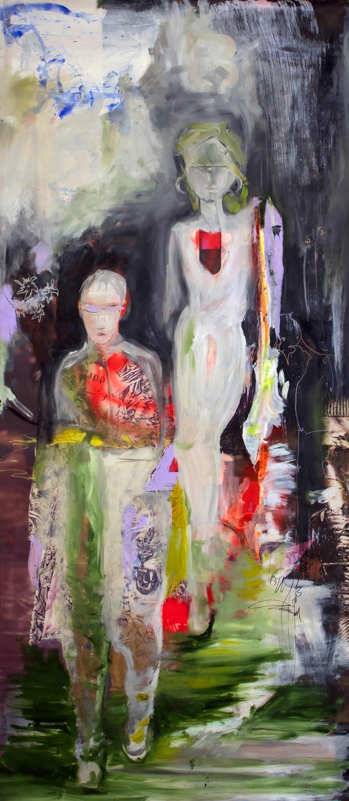 Acrylic, oil & marker on banner, 200×120 cm, 2024.
