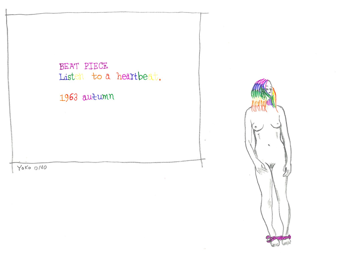 Tribute to artist Yoko Ono, including a self portrait of myself in juxtaposition with a mini reproduction of Ono’s work, as part of my Feminist Tribute series.