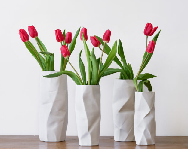 Quatre vases blancs, aux hauteurs inégales, comme une variation autour du silence.