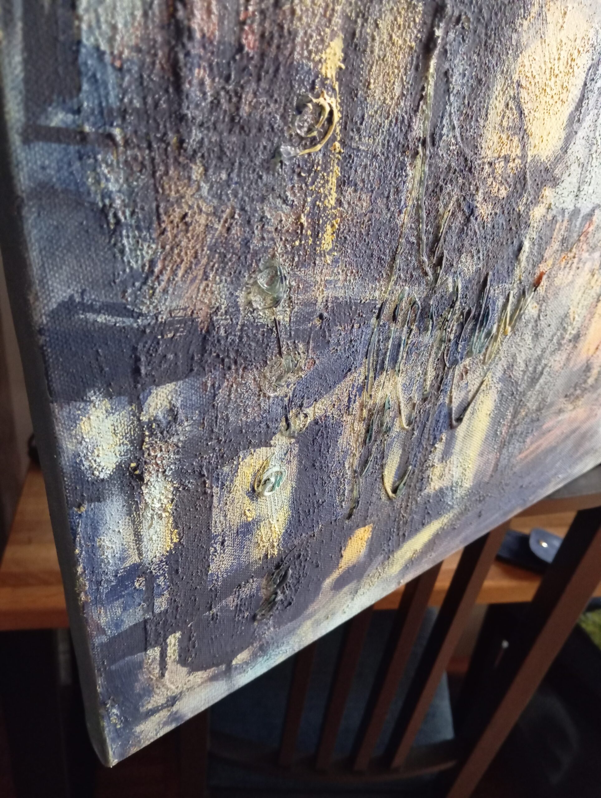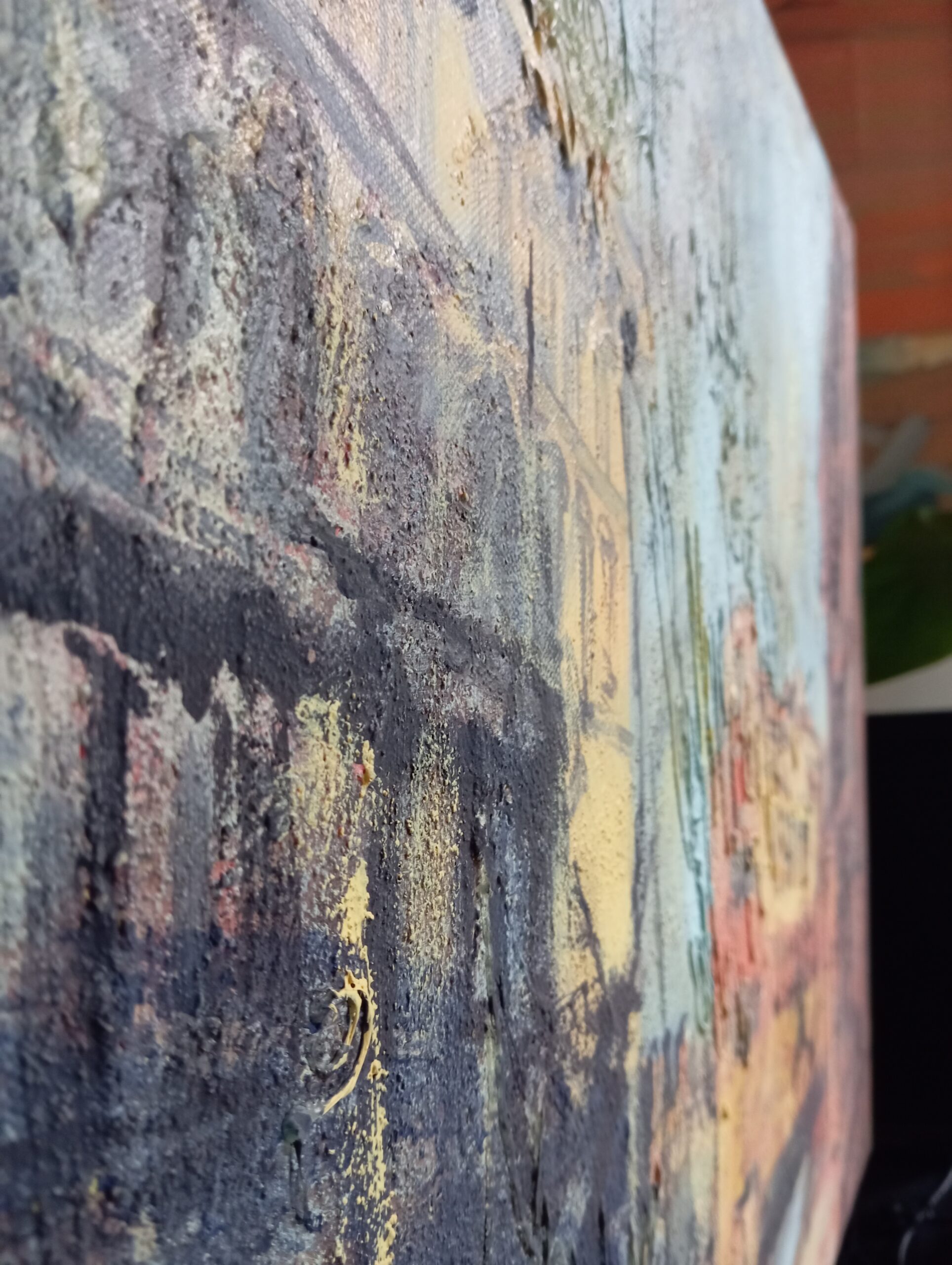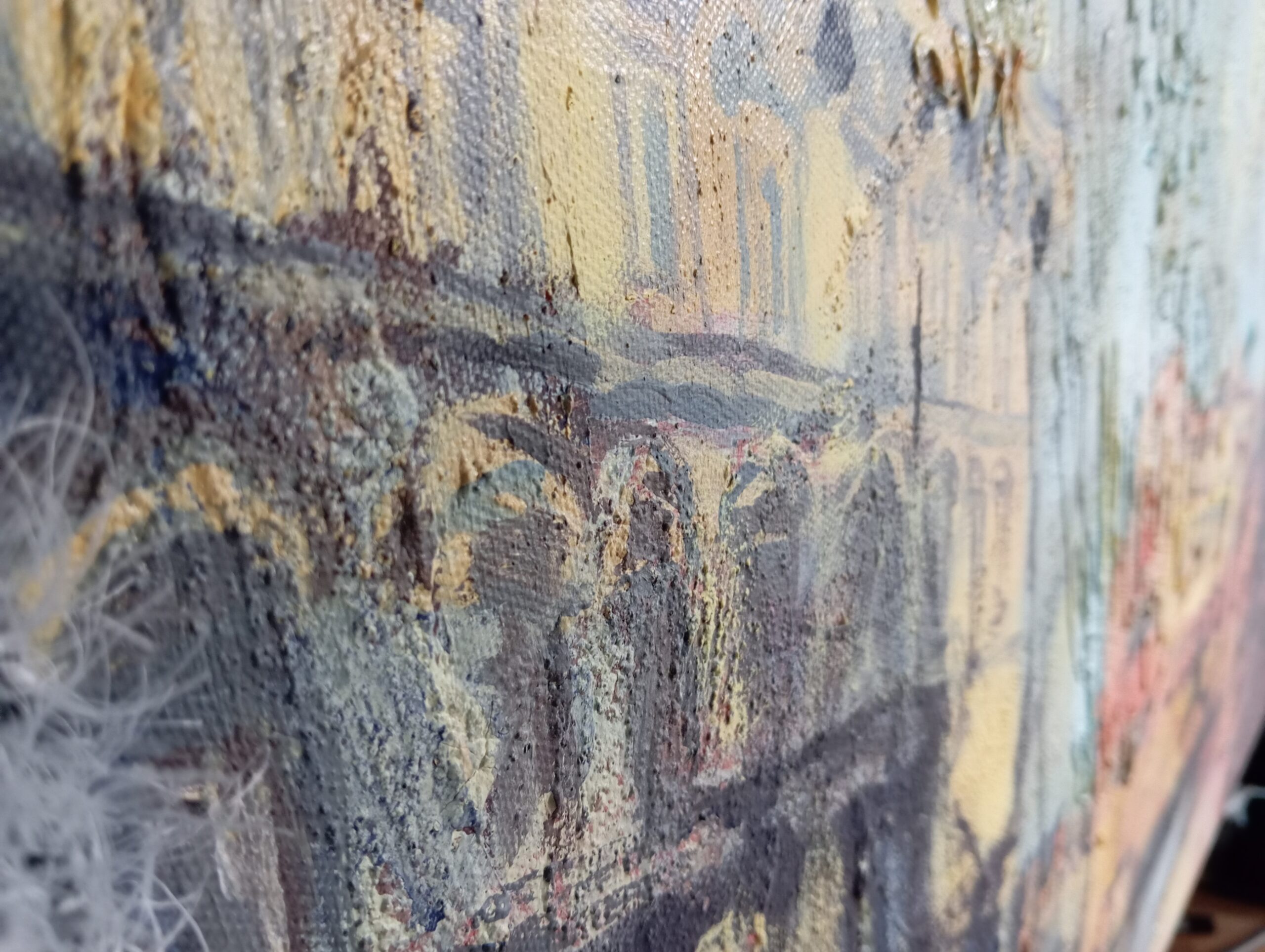 Look closer, and you may notice how our feelings shift, drifting like the clouds that sail across the sky. The trembling of colours and forms intensifies this sense of flow, even as everything hangs suspended in a single, fleeting moment. The painting’s rich texture allows the senses to resonate softly with one another, deepening the viewer’s immersion.