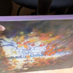Winter Calling is a colourful English winter landscape with snow glimpsed through the last leaves of autumn. It is 36x24x1.5 inches. This painting was made after a winter walk I took near the Mayfield area of Sussex where there are many small hills and vales part of the high Weald (formerly a vast ancient forest in the south of England) . This view was one I came across of a farm on a hill with light snow around it seen from a small woodland. Some of leaves were still on the trees in reds and golds as well as the dark green of ivy on the oak tree trunks. I love the contrast of cold colours to warm colours. Like most of my landscape paintings, this is not an unusual subject but I have nevertheless tried to portray it in a unique way so that some of the longing I feel for such places is expressed (yes, I desperately wish I lived in that farm). The painting is on wide edge canvas painted a muted purple colour which integrates into the edges of the painting and helps propel the viewer into the scenery. Painted on deep edge canvas, ready to hang, no frame needed and comes with certificate of authenticity. https://www.youtube.com/watch?v=eXgEI2kCNwk