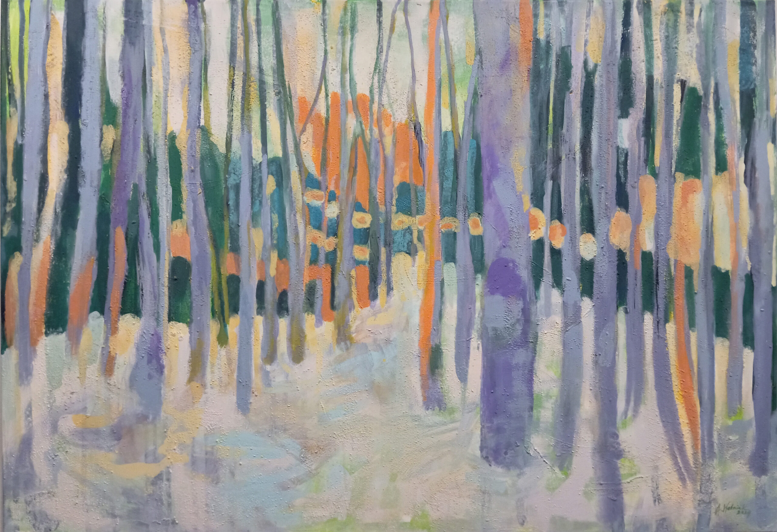 A nostalgic attempt to grasp a winter landscape reveals a forest bathed in the glow of a setting— or perhaps rising—sun. The ambiguity and elusiveness of its beauty mingle with a harmony, even a hush, of colors. The completeness of these impressions envelops the viewer like a mantle of snow.